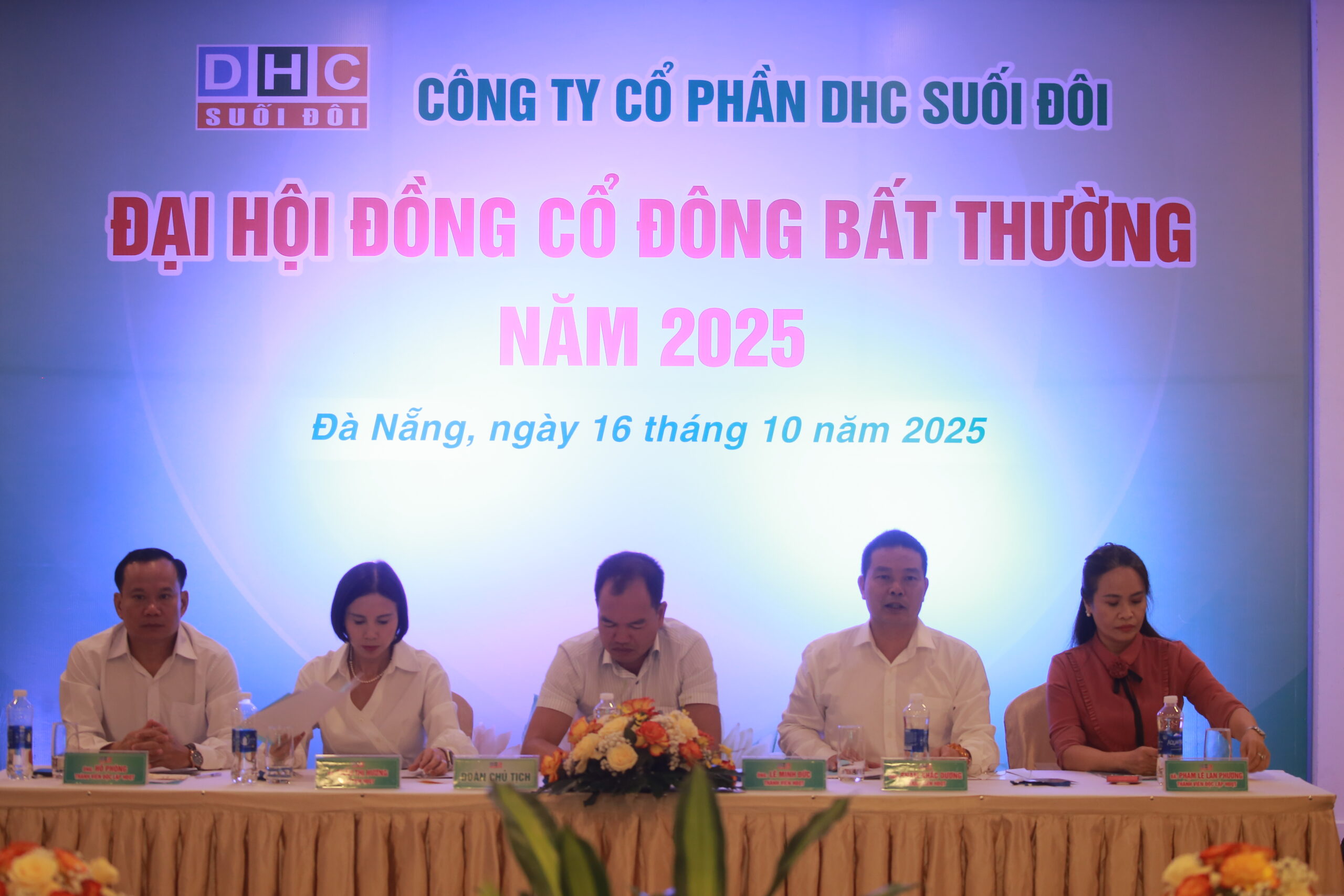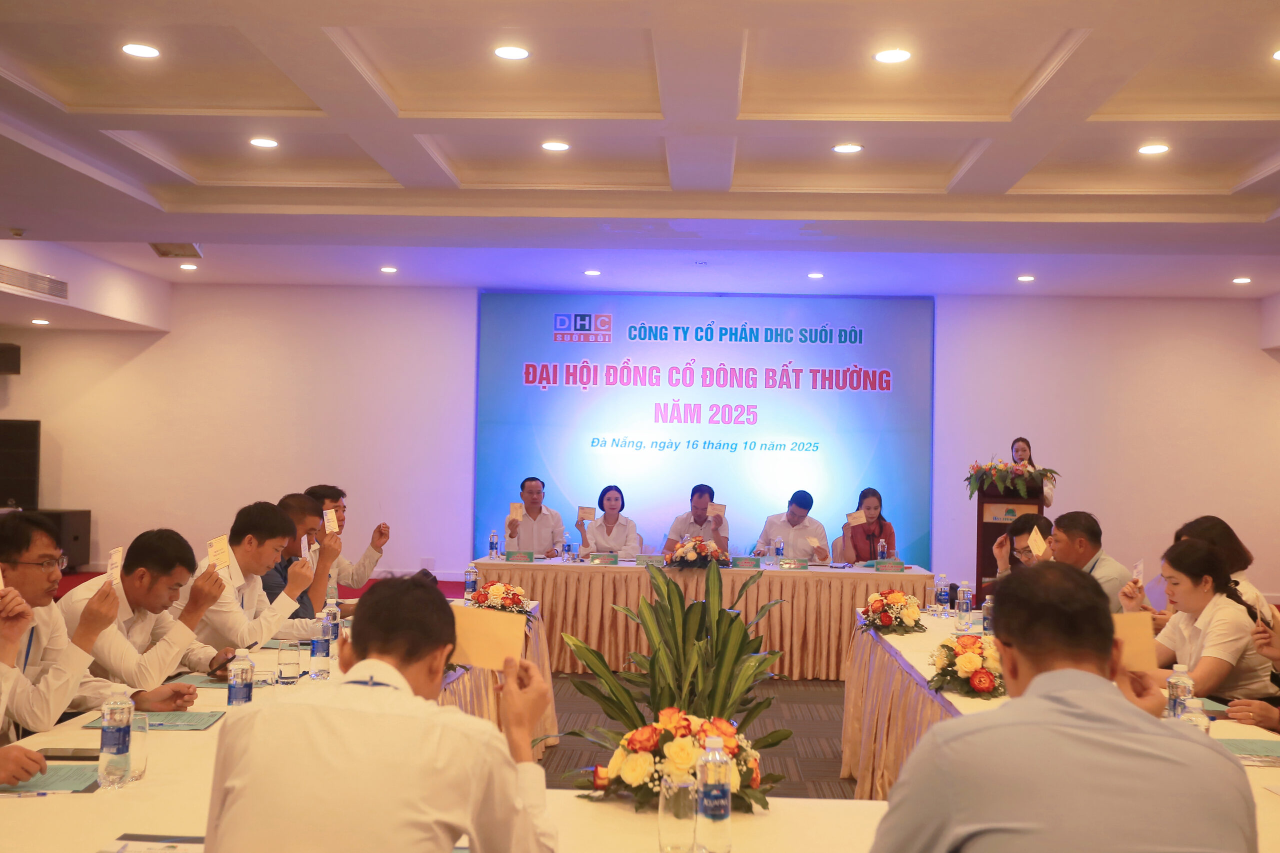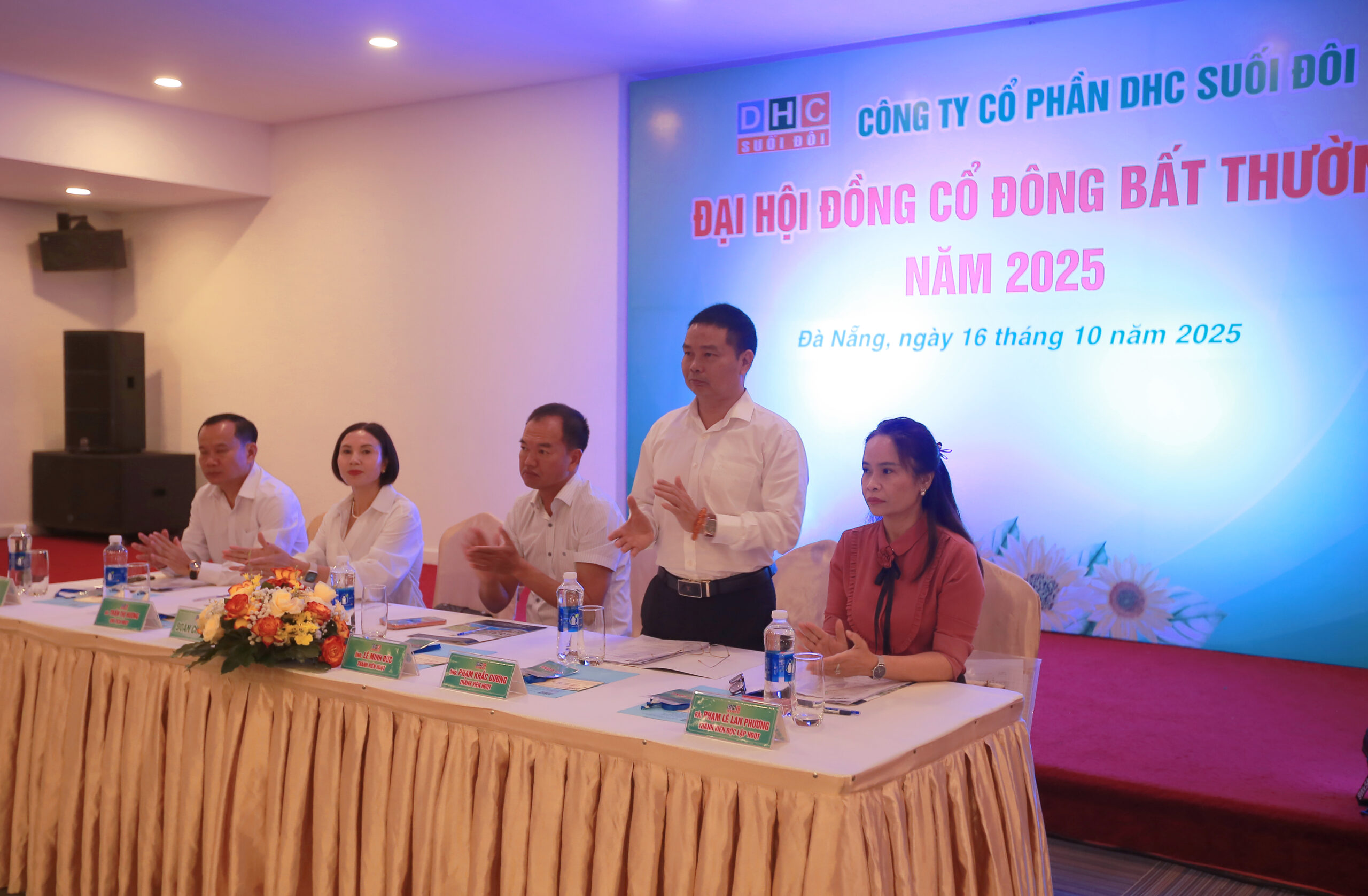 Sáng ngày 16/10/2025 vừa qua, tại khu du lịch CVSKN Núi Thần Tài, công ty Cổ phần DHC Suối Đôi đã long trọng tổ chức Đại hội đồng cổ đông bất thường năm 2025. Đại hội có sự tham dự của 25 đại biểu (gồm cổ đông và người đại diện theo ủy quyền của cổ đông). Đại diện cho: 47.077.800 cổ phần, tương đương 47.077.800 phiếu biểu quyết, chiếm 99,95% trên tổng số phiếu biểu quyết của tất cả cổ đông Công ty.